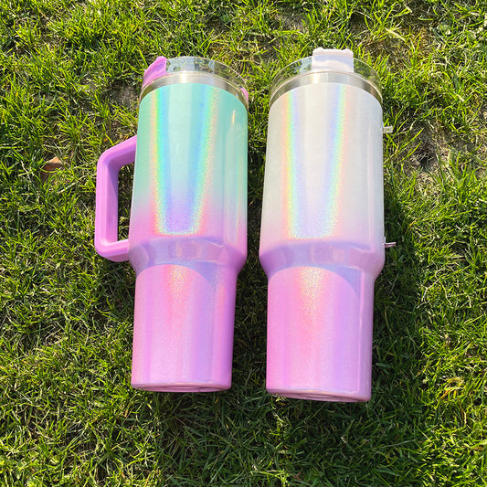 USA Warehouse H1.0 40oz Sublimation Blanks White Colorful Rainbow Shimmer Glitter Travel Mug Tumbler With Handle -40JBSCHQA-USLCA