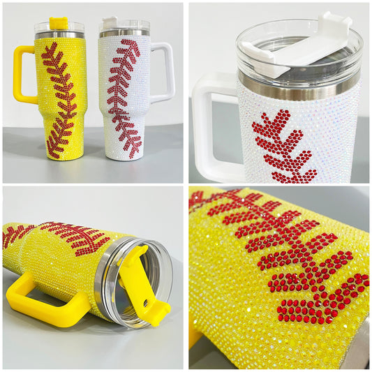 40oz Stanley Style Baseball Bling Tumblers With Handle - CNLCA
