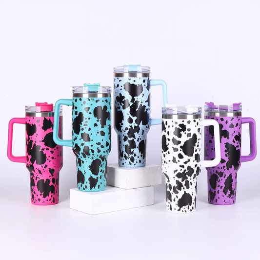 40oz Cow Print Stainess Steel Quencher Tumbler -CNLCA