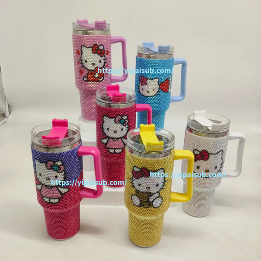 40oz Hello Kitty Cat /Kuromi /Melody/Cinnamoroll Rhinestone Bling Quencher Tumbler-CNLCA