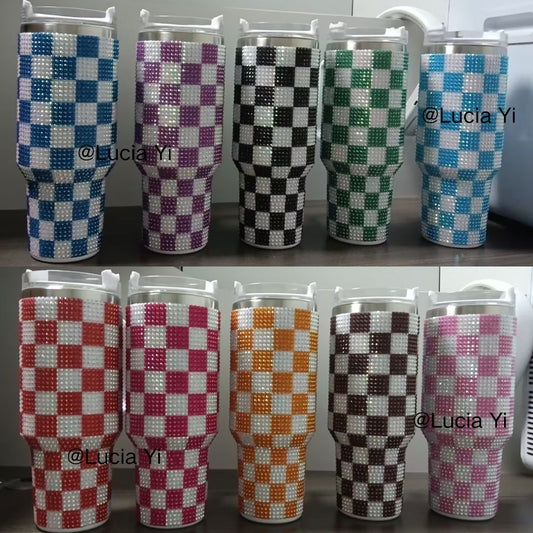 40oz Checkerboard Rhinestone Bling Quencher Tumbler-CNLCA
