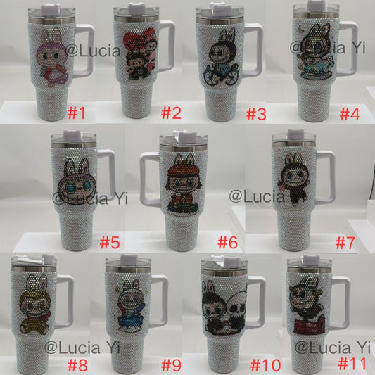 40oz LABUBU POP MART Rhinestone Bling Quencher Tumbler-CNLCA
