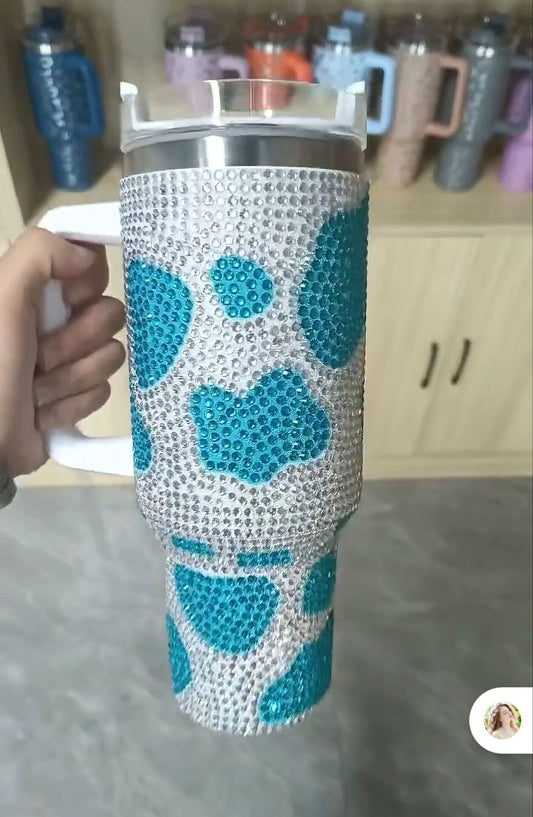 40oz Bling Cow /Flag Rhinestone Tumbler With Handle -CNLCA