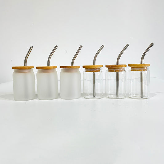 16oz Bamboo Lid Omber Color Shimmer Blank Sublimation Glass Can-USLCA