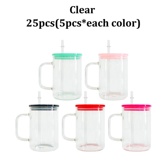 16oz Blank Sublimation Clear Frosted Beer Can Glass Coffee Mugs With Colorful Silicone Lids ship around End of November-USLCA