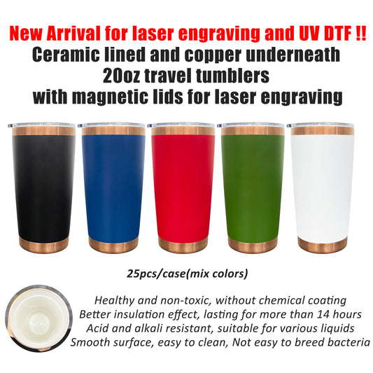 20oz Magnetic Lid Ceramic Lined Copper Plated Underneath Powder Coated Stainless Steel Car Coffee Tumbler for Laser-CNLCA