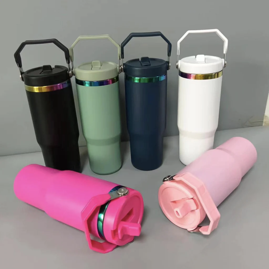 Custom 30oz Black Lid Rainbow Underneath Powder Coated Flip Straw Tumblers For Laser Engraving -CNLCA