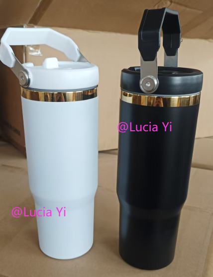 30oz Black White Gold Plated Underneath Powder Coated Flip Straw Water Bottle Tumbler for Laser Engrave-CNLCA