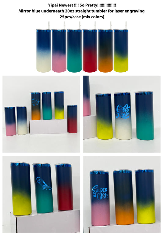 20oz Ombre Colors Blue Plated Undernetah Skinny Straight Tumbler For Laser Engrave-CNLCA