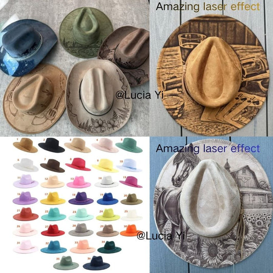 Men Women Western New Style 9.5cm Large Brim Suede Hat for Laser-CNLCA