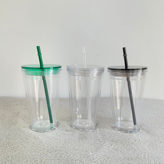 Plastic Lid and Straw for 16oz 24oz Double Wall Snow Globe Tapered Plastic Cup Tumbler-CNLCA