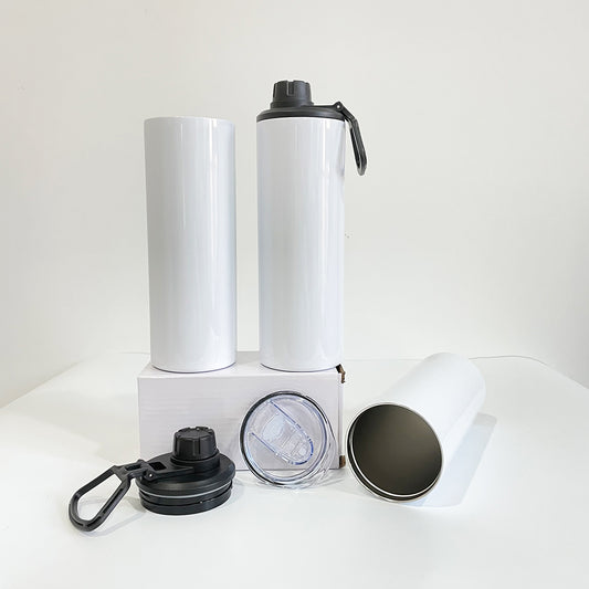 20oz Blank Sublimation White Straight Dual Lids Tumbler With Handle Lid And Slide Lid Sold By Case 25pcs-USLCA