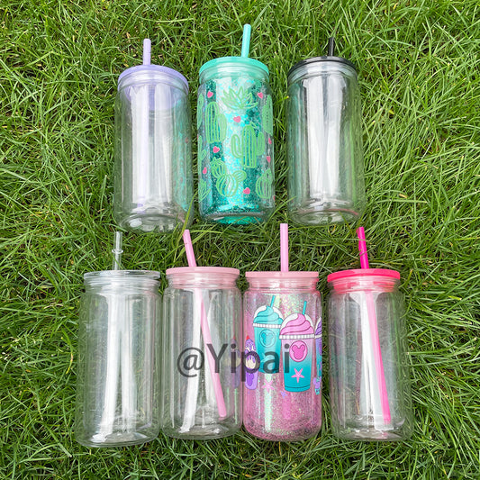 TO Canada 16oz 24oz Clear Pre Drilled Snow Globe Double Wall Plastic Acrylic Cups with Two Layers Lids-CNLCA