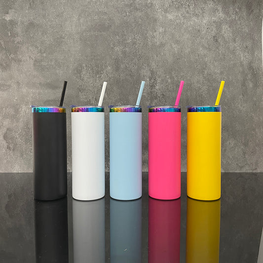 To Canada Powder Coated 20oz Rainbow Plated Skinny Straight Tumbler For Laser -CNLCA