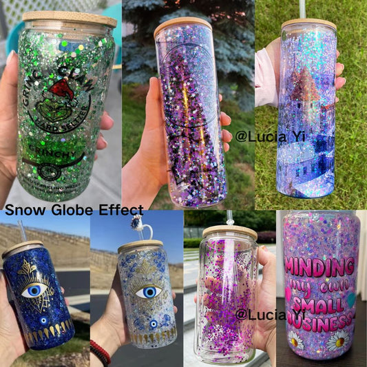 To Canada 12oz & 15oz Sublimation Snow Globe Double Wall Glass Can With PP Lids And Colorful Straw-USLCA