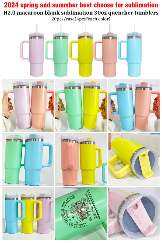 H2.0 30oz Macaron Blank Subliamtion 30oz Quencher Tumblers With Handle 20pc/case-CNLCA