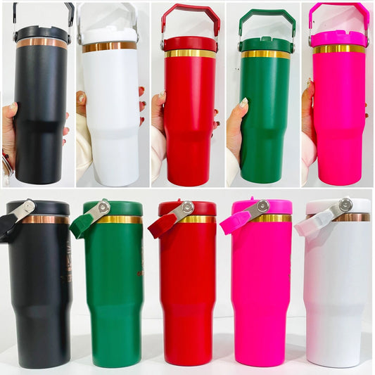 30oz Stanley Style Powder Coated Flip Straw Gold & Copper Plated Tumblers For Laser Engraved-CNLCA