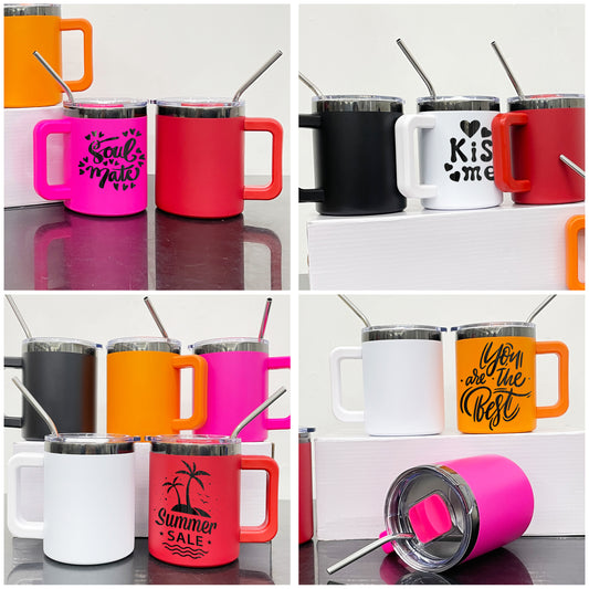 10oz Powder Coated Colorful Black Plated Underneath Lowball Tumblers Mug With Removable Plastic Handle And Magnetic Lids-CNLCA