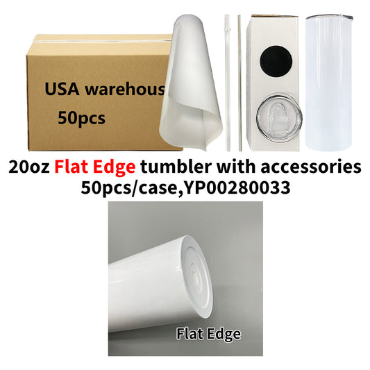 90 Degree 20oz Flat Edge Stainless Steel Vacuum Insulated White Blank Sublimation Straight Tumbler With All Accessories- USLCA