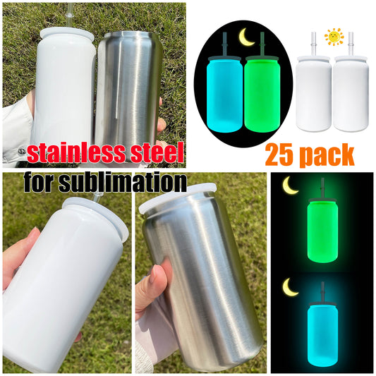 16oz Glow In The Dark Blank Sublimation Stainless Steel Metal Can Tumbler-CNLCA