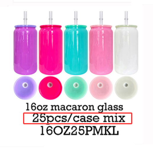 16oz Christmas Red Green Color Glass Can with PP Lids Beer Can-USLCA