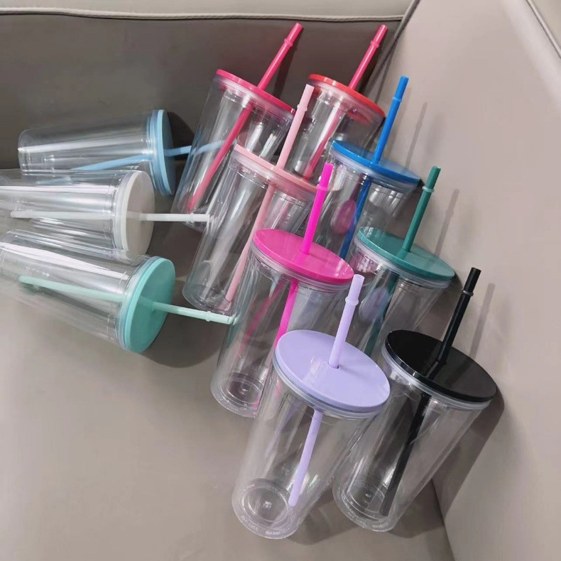 16oz Double Wall Snow Globe Tapered Plastic Cup Tumbler with Pre-drilled Hole and Plug Color Lid-CNLCA