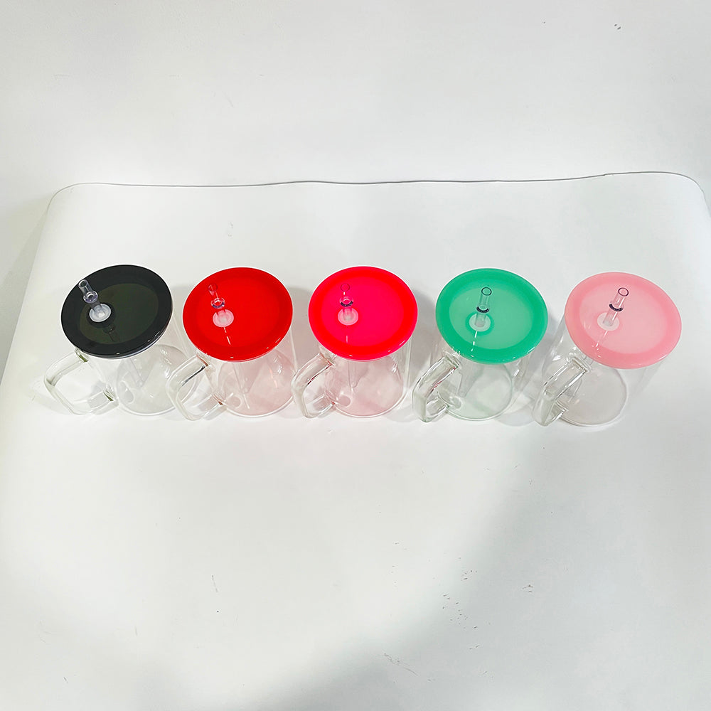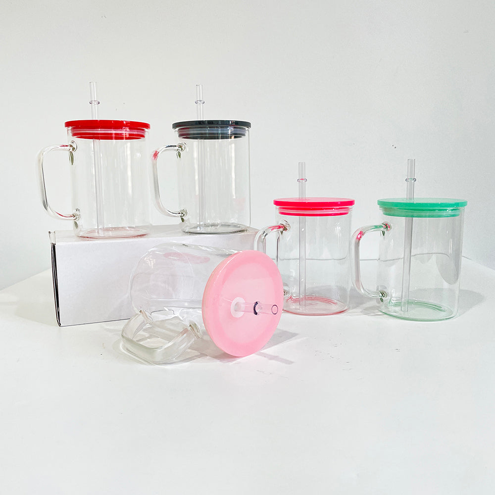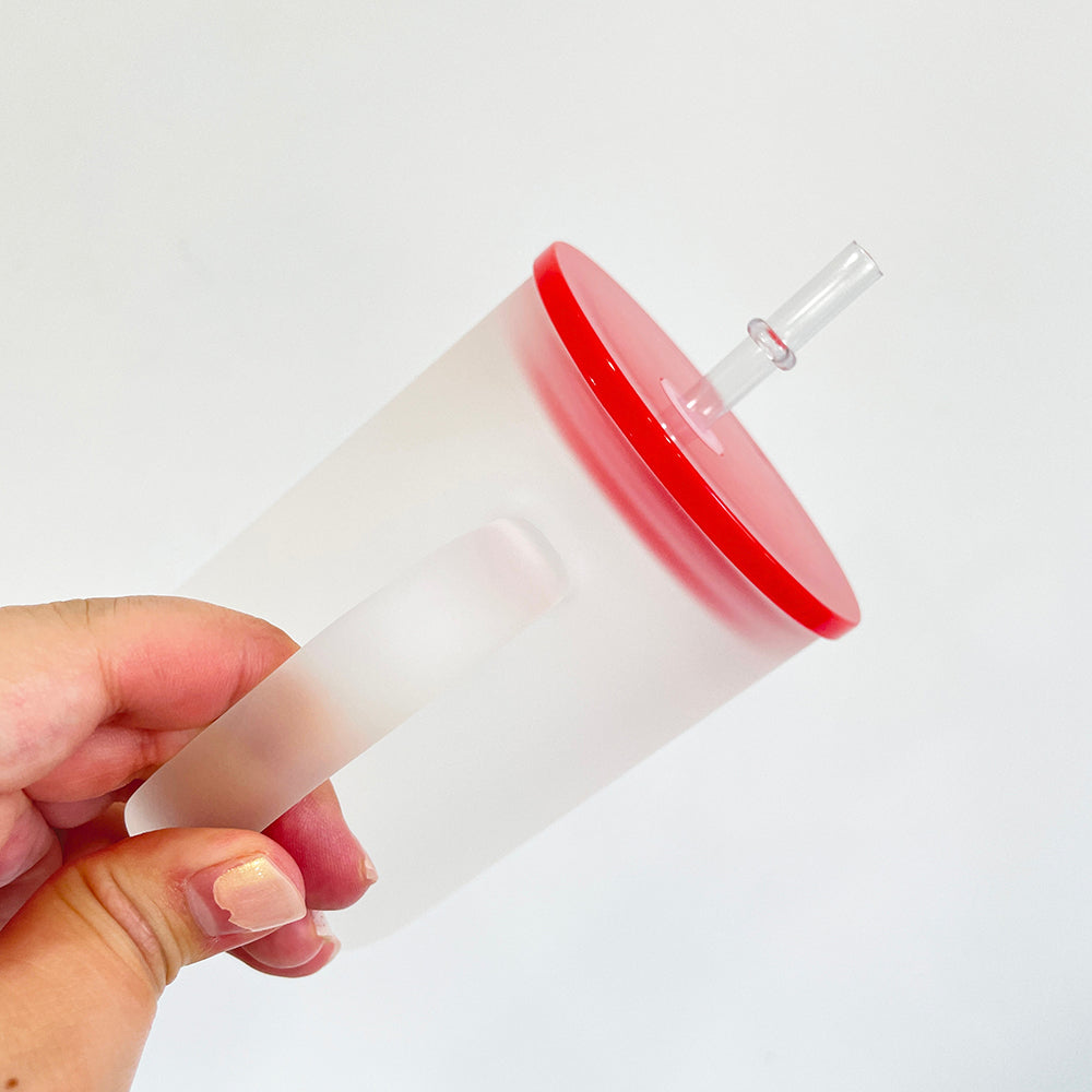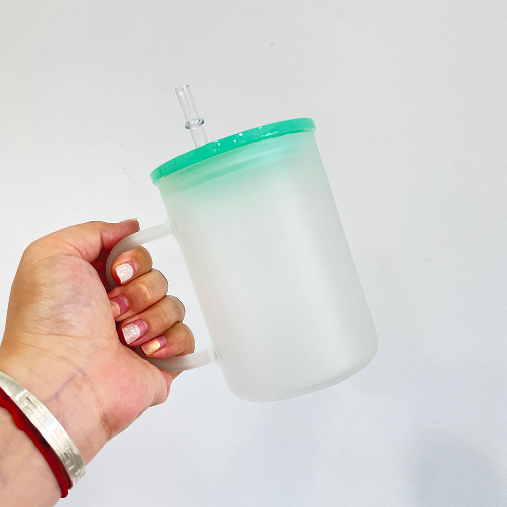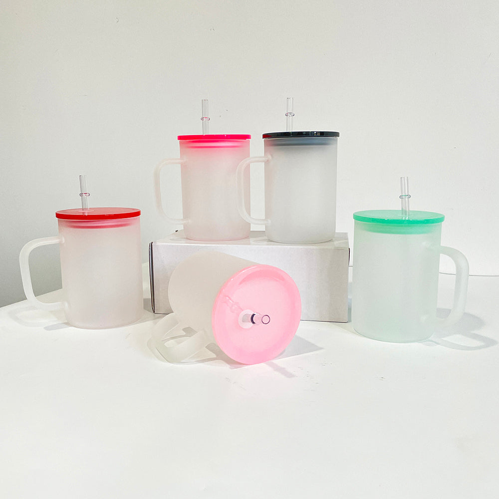 17oz Clear Frosted Blank Sublimation Glass Mugs With Colorful Plastic Lid -CNLCA