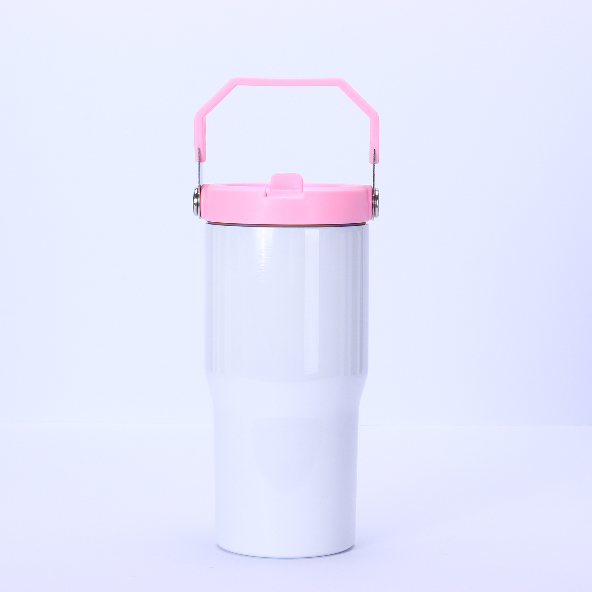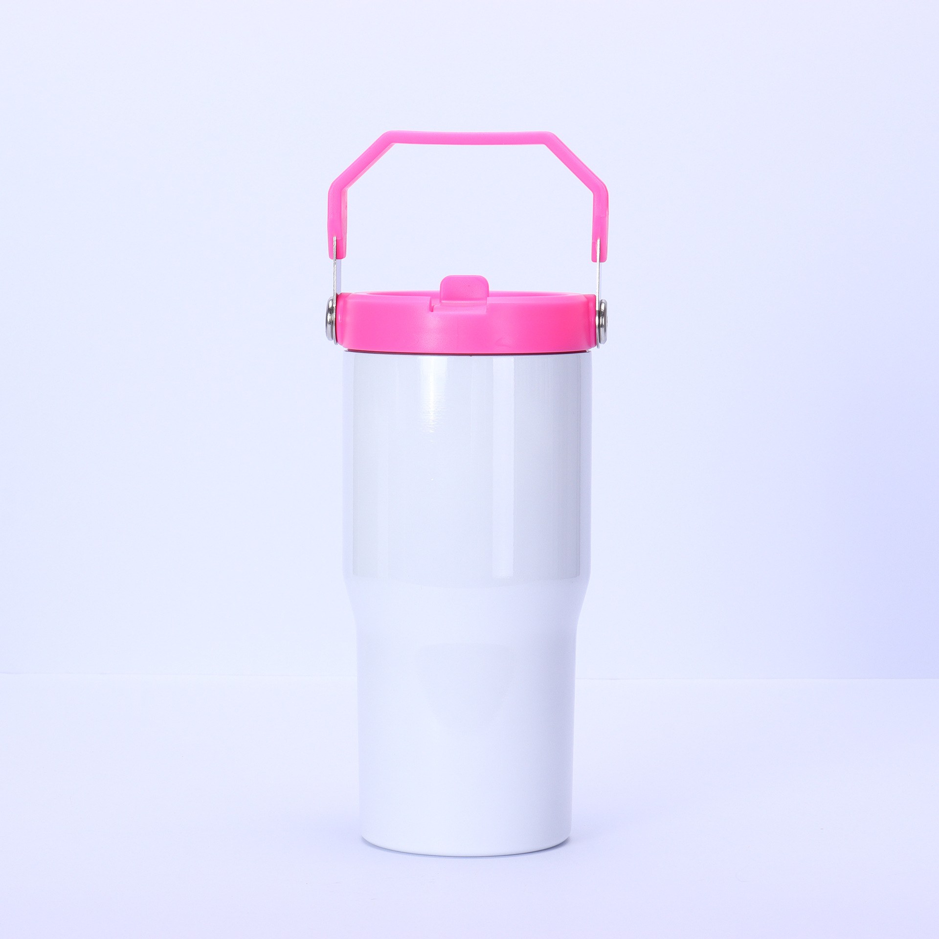 20oz White Blank Sublimation Flip Straw Lid Tumbler Water Bottle with Color Handle-CNLCA