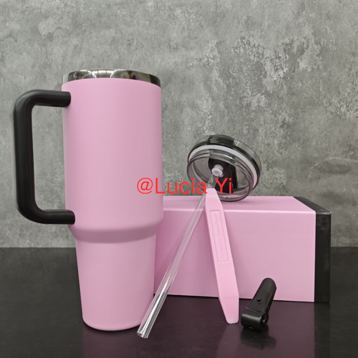 40oz H2.0 No Spill Leak Proof Lids Black Plated Underneath Messi Pink Colored Quencher Tumblers-CNLCA)