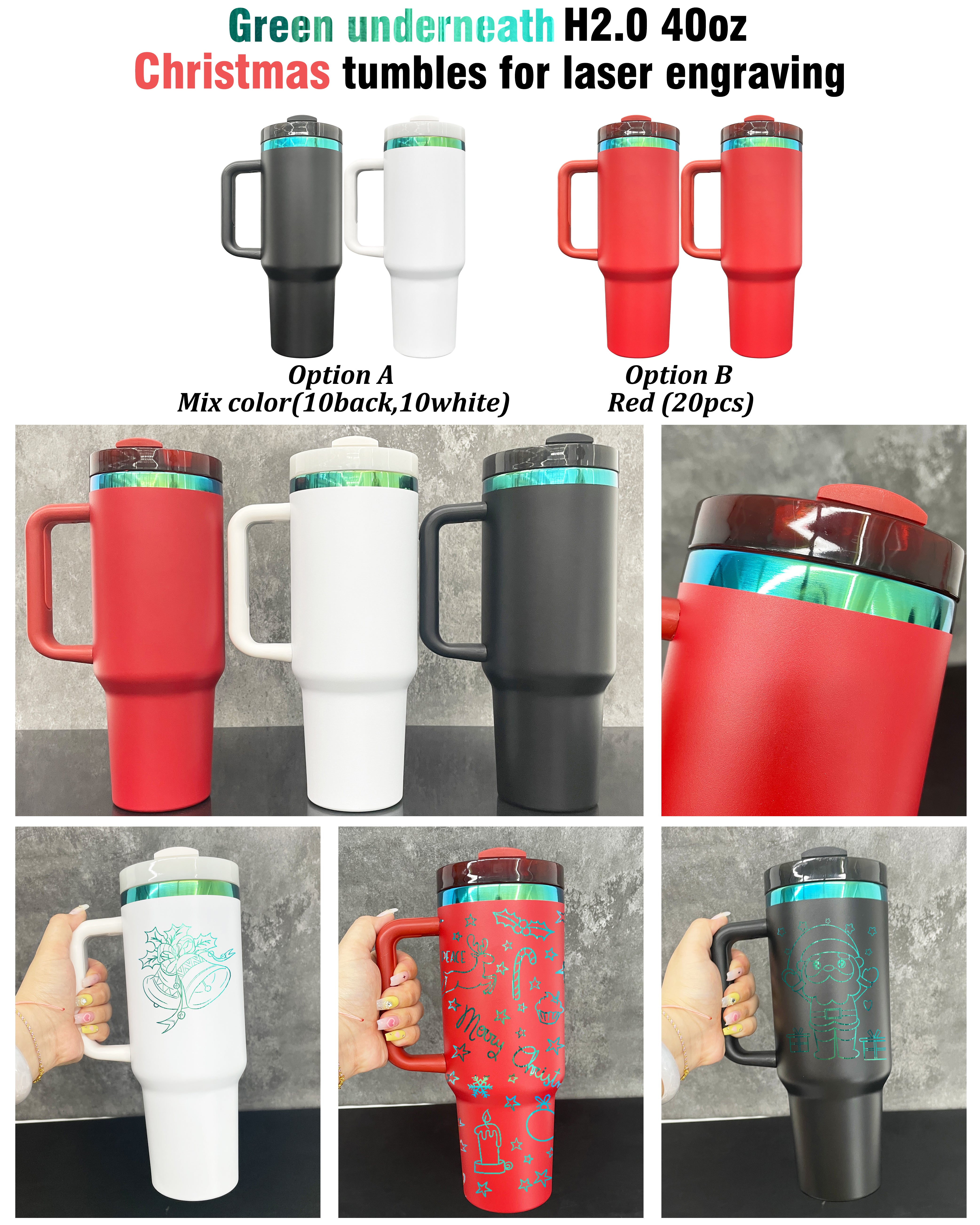 🍀40oz Ombre Green Blue Underneath Powder Coated H2.0 Quencher Tumblers For Laser Engrave -CNLCA