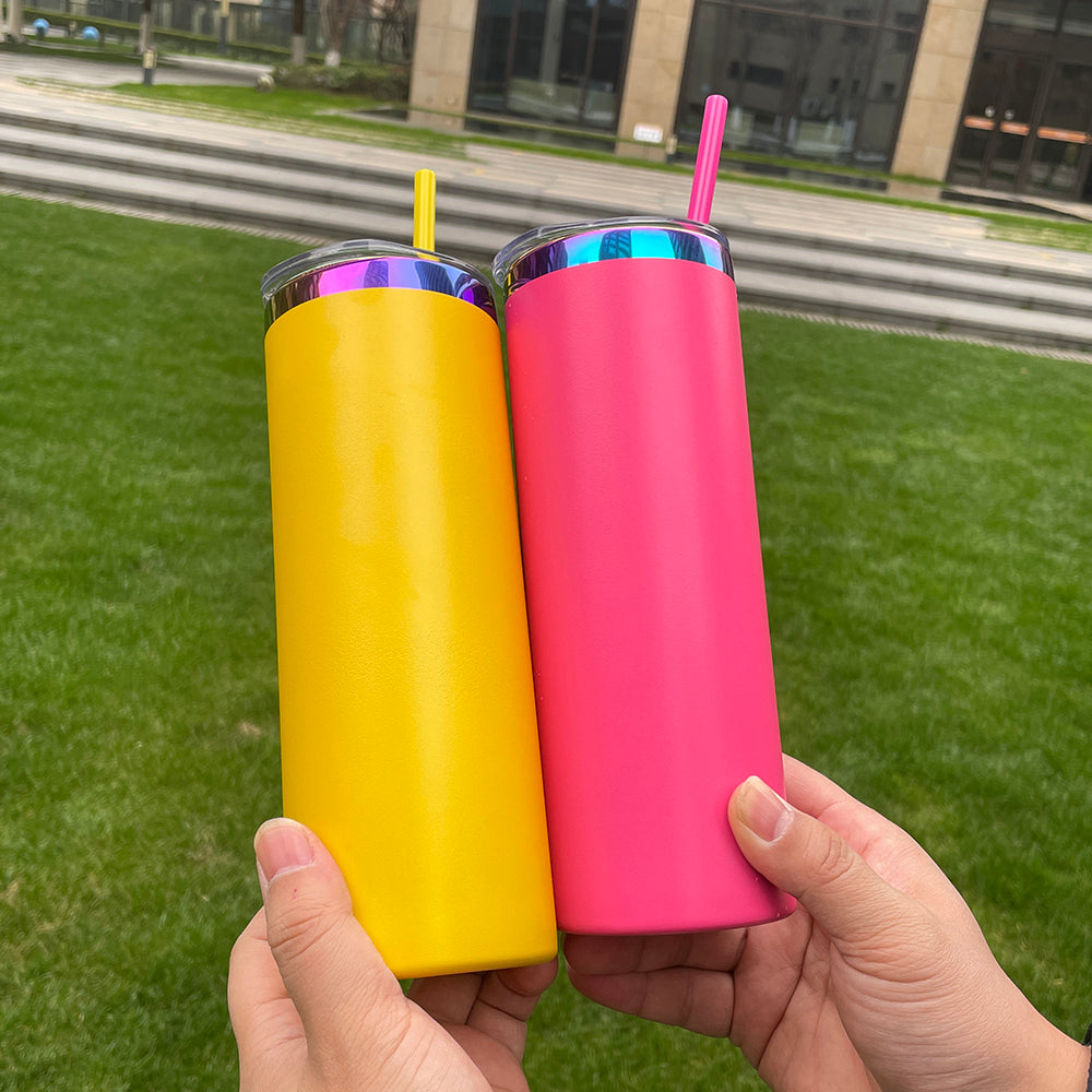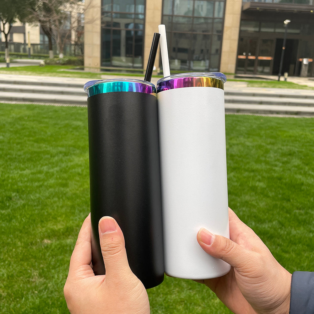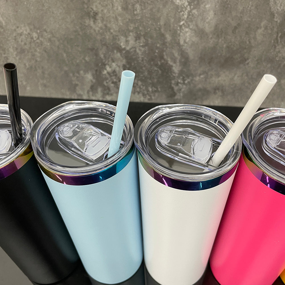 To Canada Powder Coated 20oz Rainbow Plated Skinny Straight Tumbler For Laser -CNLCA